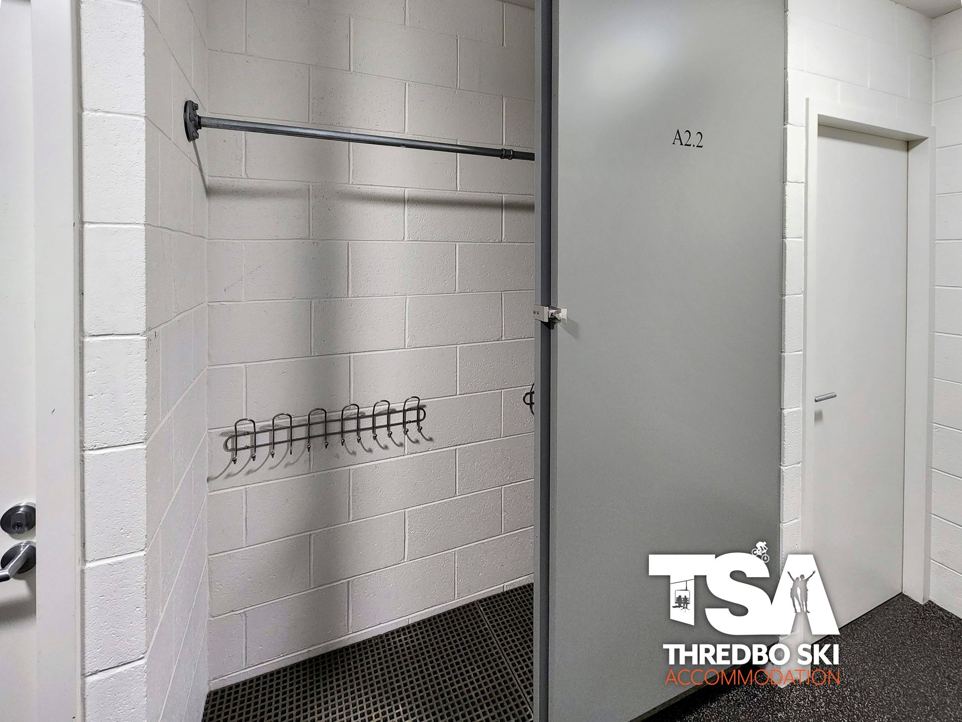 Ground floor: Parking, entrance to apartment building and elevator, communal ski locker room (all individually locked), bike storage room