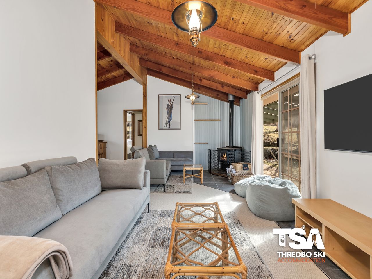 With key amenities such as high-speed Starlink Wi-Fi and a cozy wood-burning fireplace and ducted heating throughout, comfort is at the forefront of GG Penderlea's design. A fully-equipped kitchen helps to make self-catering a breeze, whilst the dining table becomes a social hub for shared meals and chatter. The drying room offers a convenient space for your ski gear, and ample uncovered parking and ski storage make this the perfect retreat for ski enthusiasts.