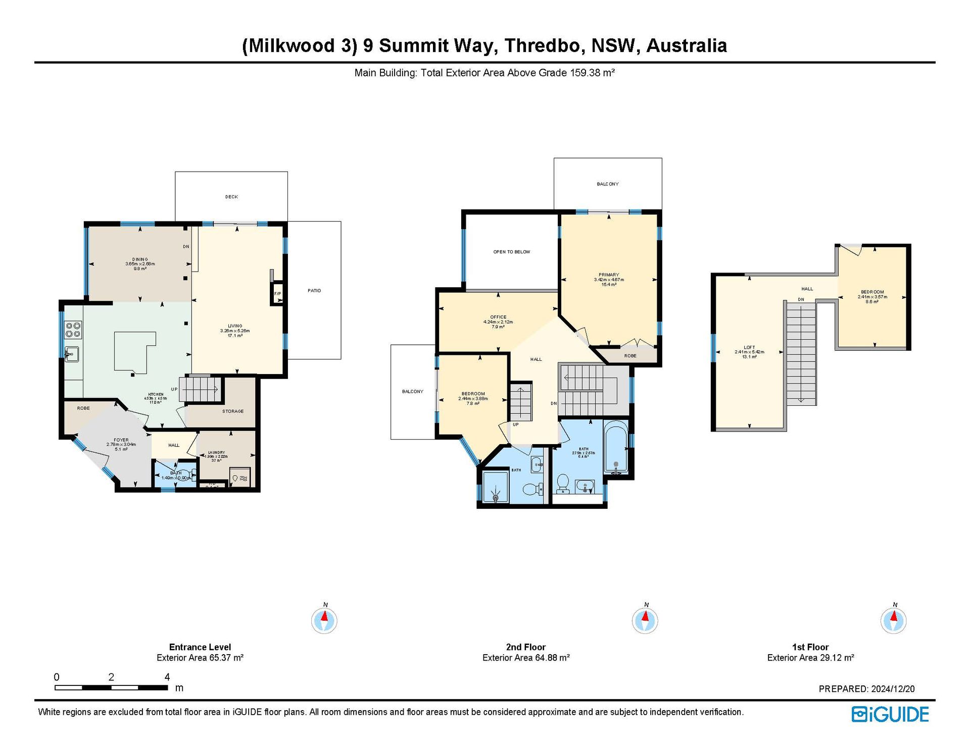 Ground Floor: entrance mudroom, drying cupboard, separate toilet, open plan kitchen/dining/living room, and deck