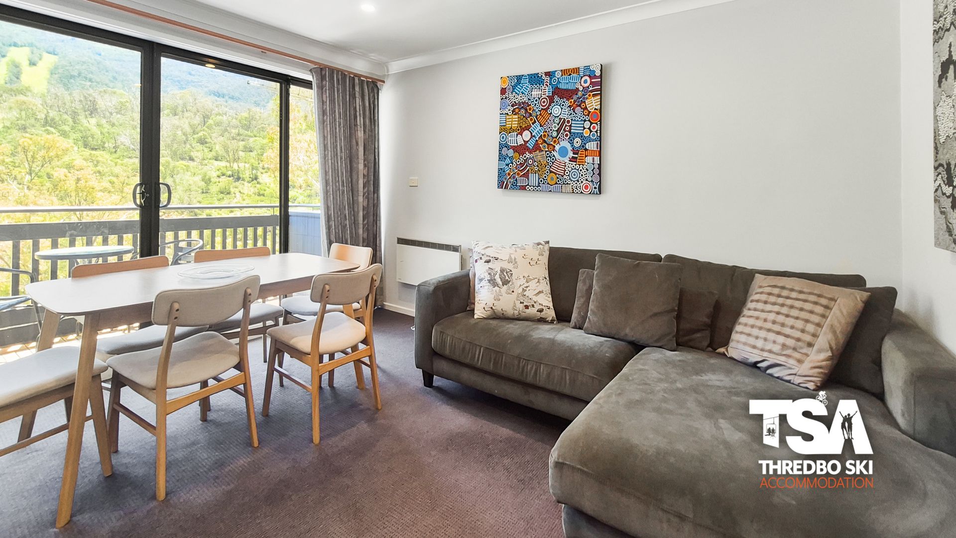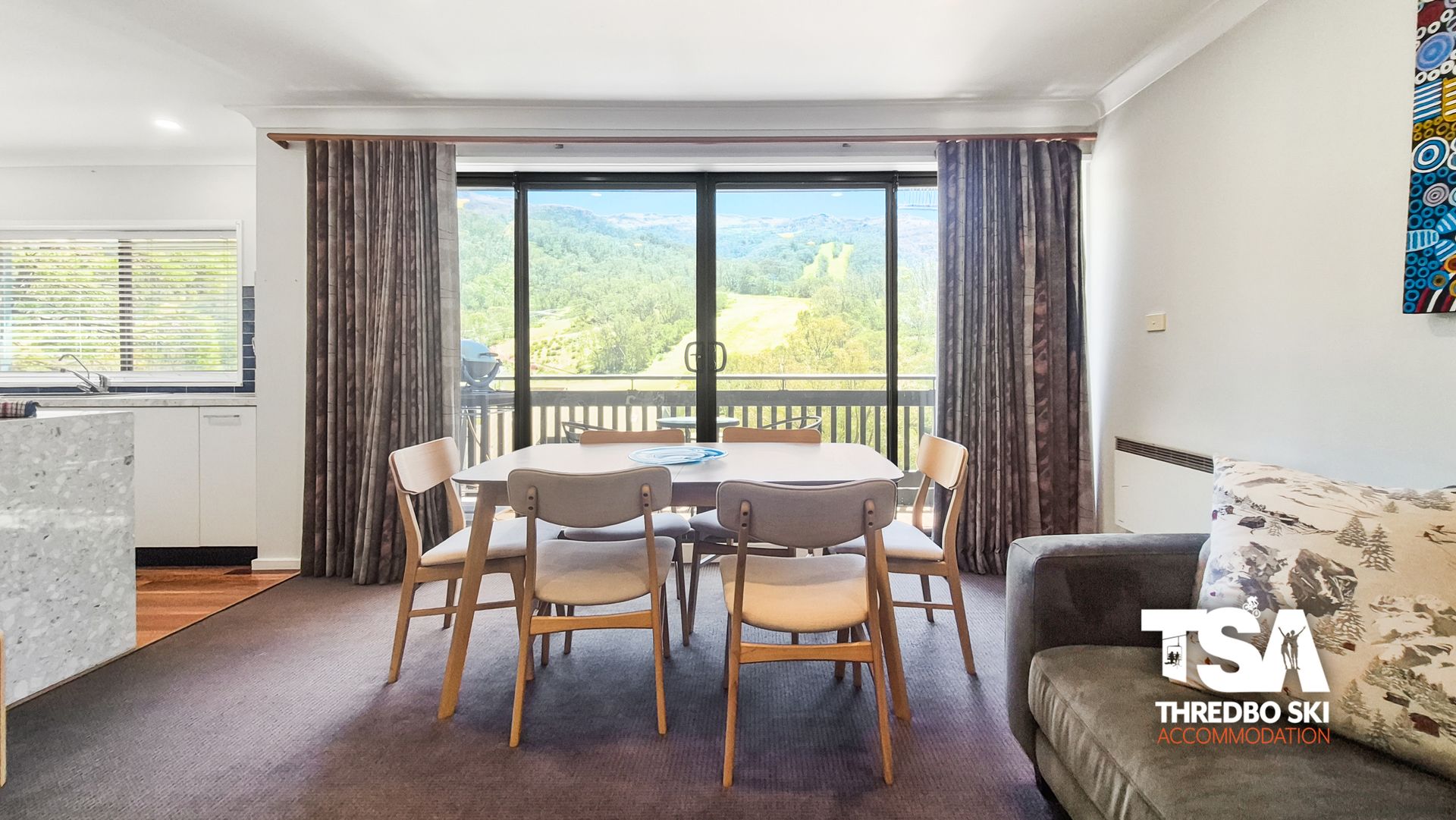 Positioned above the Post Office and nestled amidst Thredbo's bustling village, this Mowamba apartment offers an exceptional vantage point to soak in the village atmosphere and sweeping slope vistas.