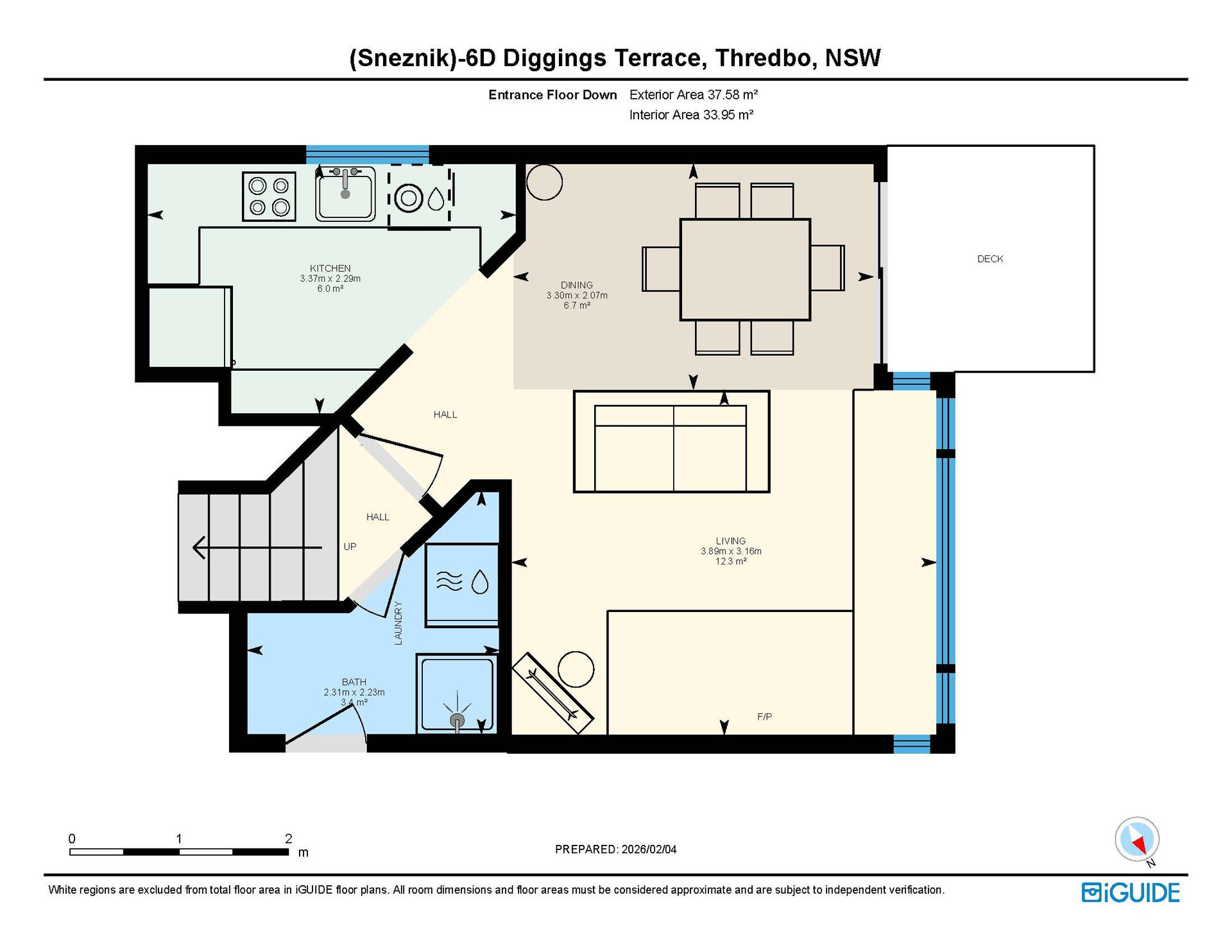 Lower Level: living, dining, kitchen, laundry/ drying cupboard and balcony