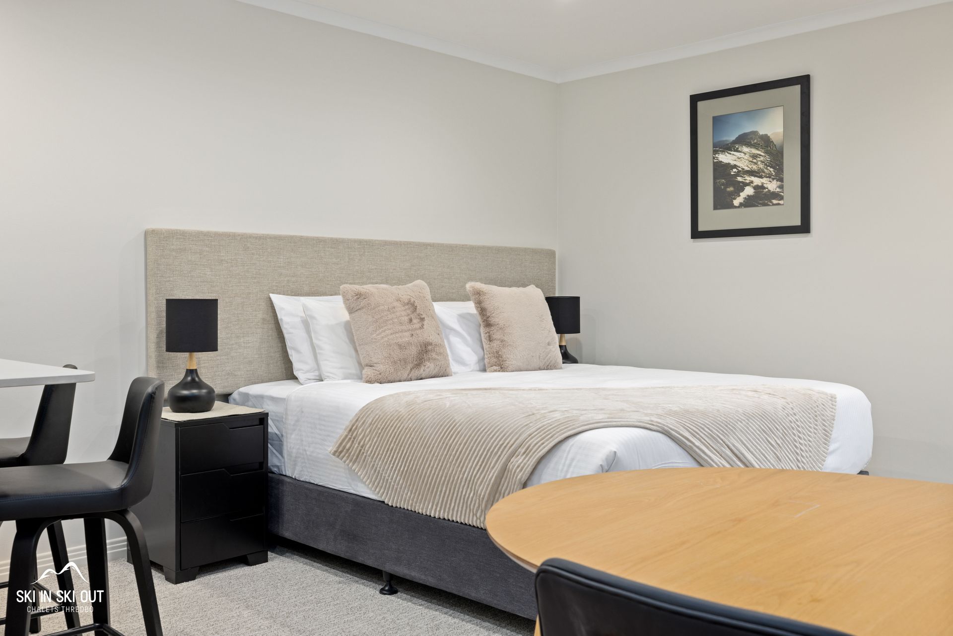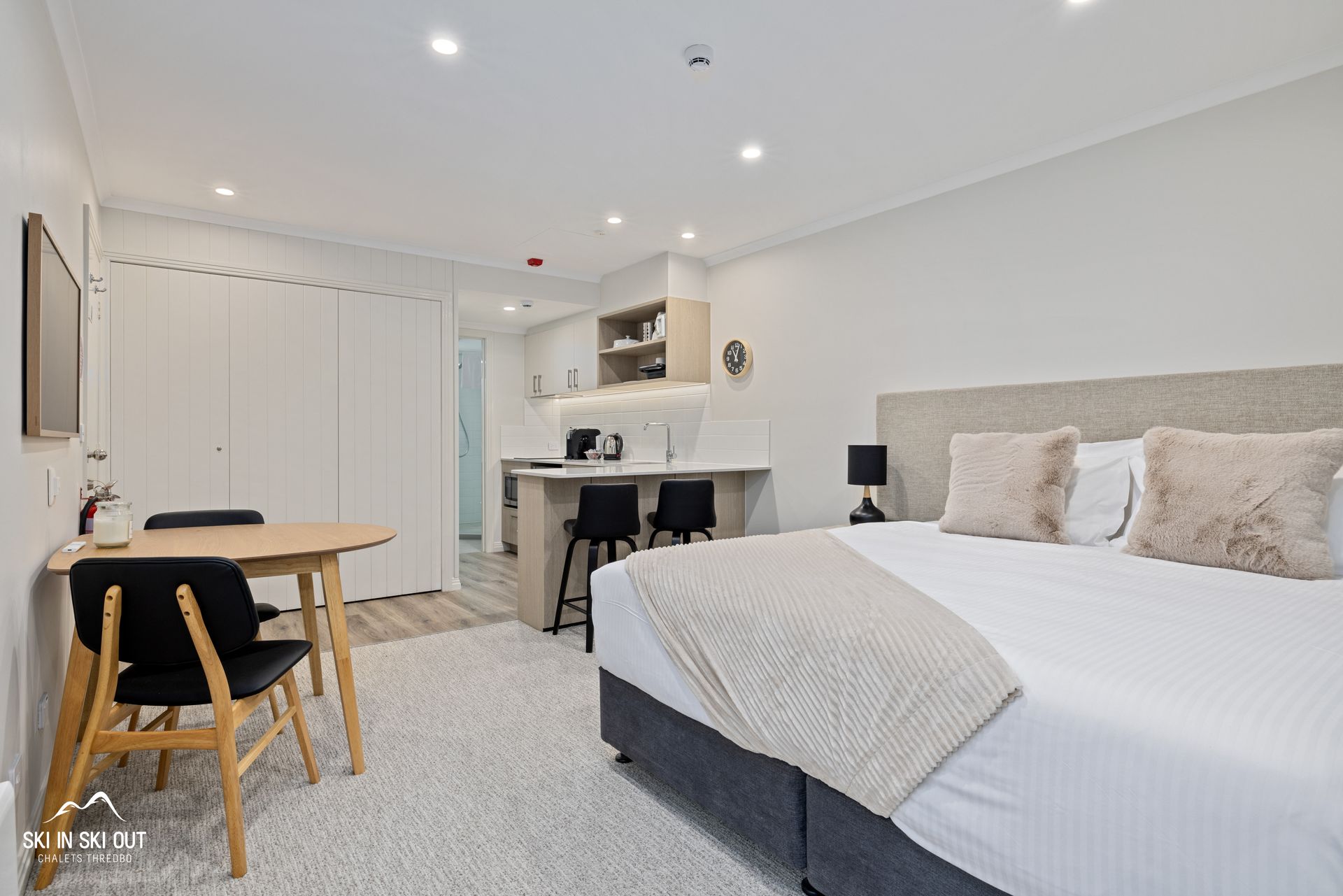 FEATURES * All linen, crockery and cutlery supplied./small fridge/ microwave & two hobs electric stove top. * Combined washer/dryer * Small dining table .* Television / DVD* Shuttle bus at your door in Winter. * Free Wifi internet access.